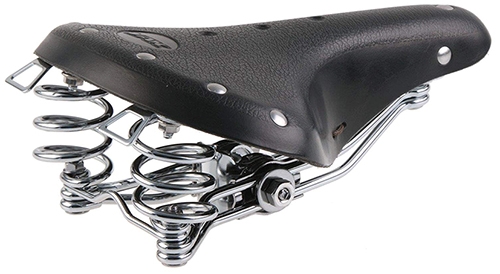 • Classic leather saddle with stainless steel rivets • L x W: 270 x 210 mm • Sturdy double-strut frame with steel springs